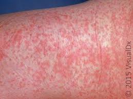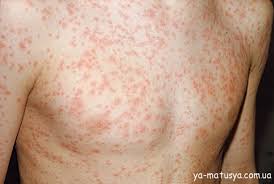 • Симптоми: висока температура (до 40°C), сухий кашель, кон'юнктивіт (сльозотеча, світлобоязнь) і характерний висип, що з’являється спочатку на обличчі, а потім спускається на тіло.