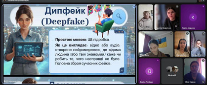 Студенти розглянули ключові поняття інформаційної безпеки. Зокрема дізналися, що таке фішинг – метод «цифрової риболовлі», коли через копії відомих сайтів або підроблені листи шахраї виманюють логіни, паролі та фінансові дані. Не менш актуальним стало обговорення явища дипфейків – ШІ-підробок відео чи аудіо, які дедалі частіше використовуються для маніпуляцій та дезінформації.